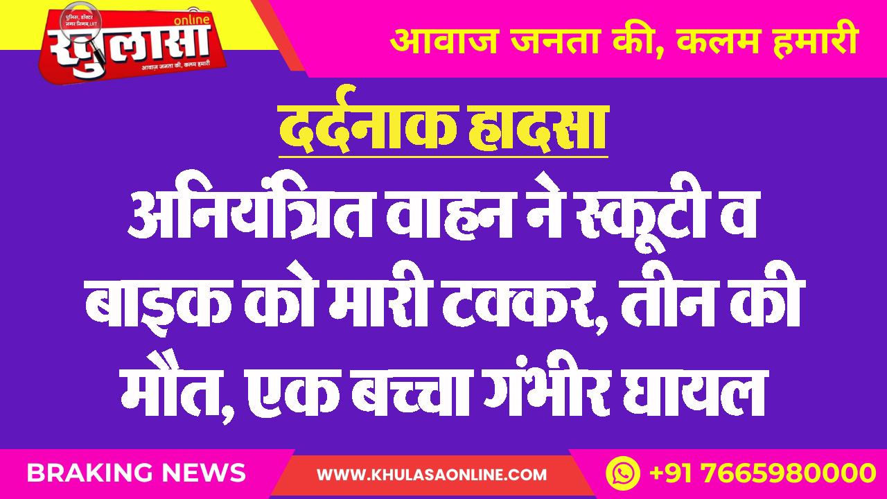 दर्दनाक हादसा : अनियंत्रित वाहन ने स्कूटी व बाइक को मारी टक्कर, तीन की मौत, एक बच्चा गंभीर घायल