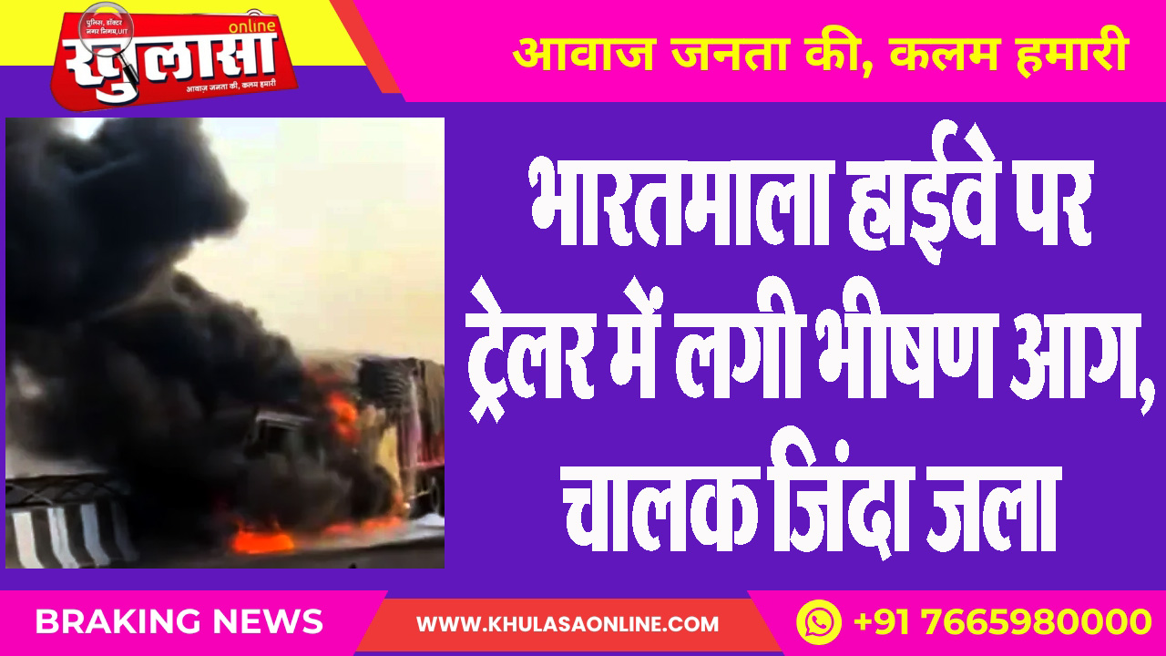 भारतमाला हाईवे पर ट्रेलर में लगी भीषण आग, चालक जिंदा जला
