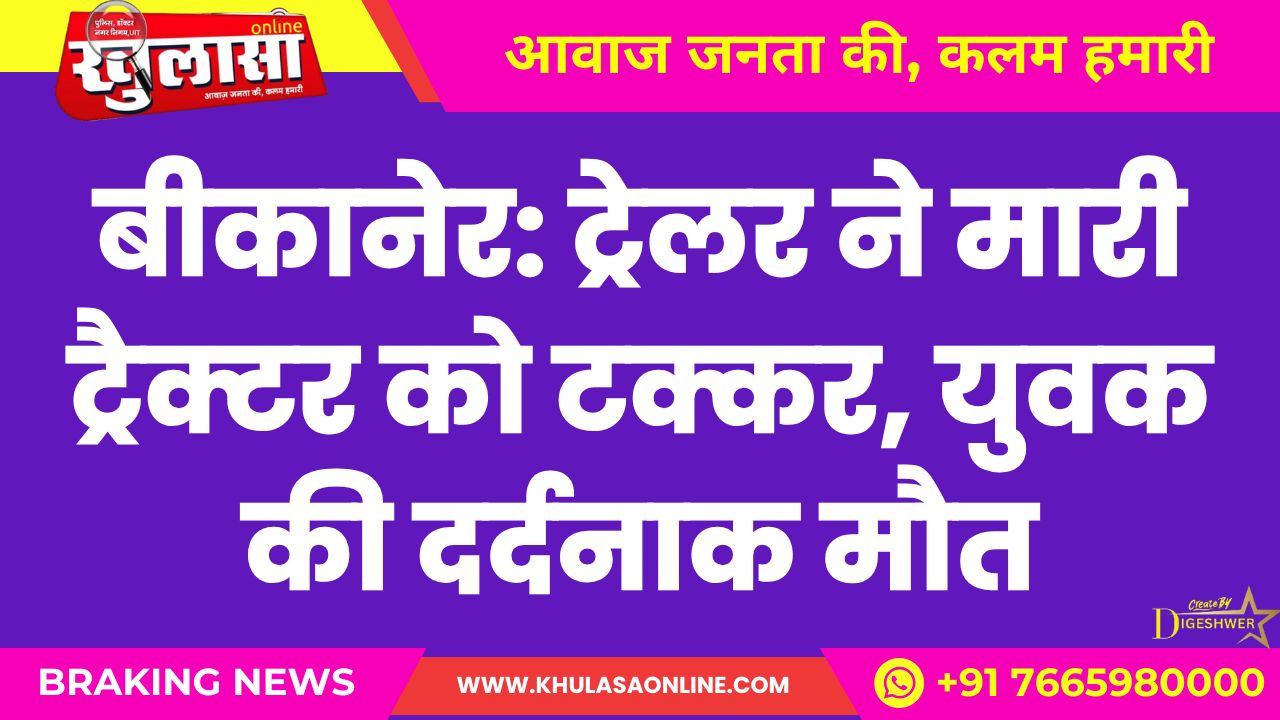 बीकानेर: ट्रेलर ने मारी ट्रैक्टर को टक्कर, युवक की दर्दनाक मौत