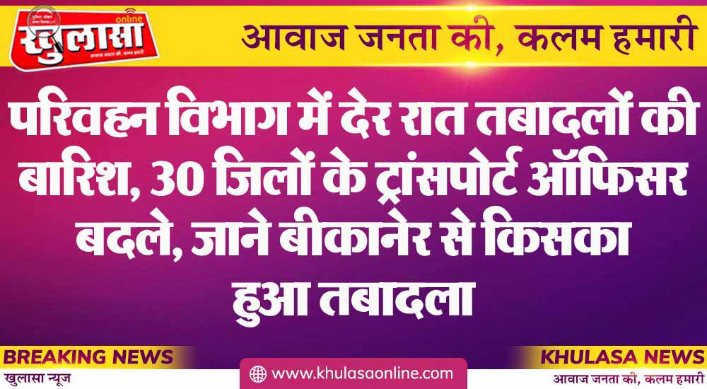 परिवहन विभाग में देर रात तबादलों की बारिश, 30 जिलों के ट्रांसपोर्ट ऑफिसर बदले, जाने बीकानेर से किसका हुआ तबादला