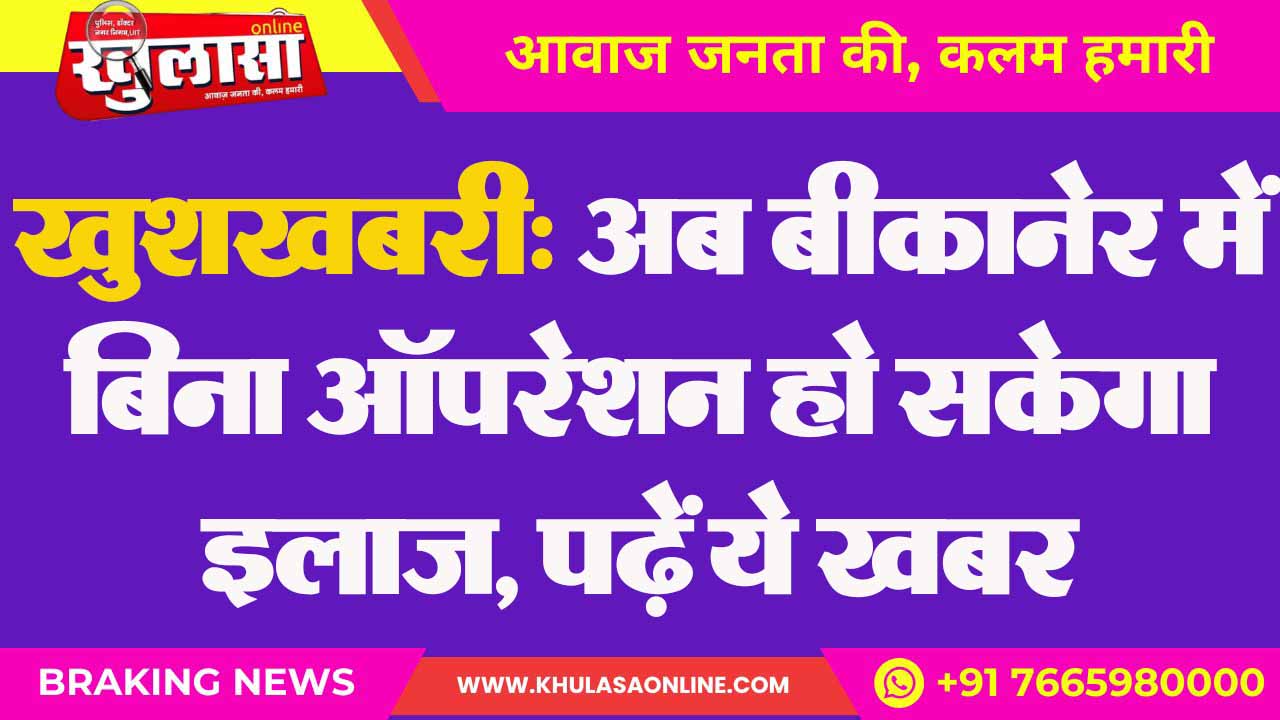खुशखबरी: अब बीकानेर में बिना ऑपरेशन हो सकेगा इलाज, पढ़ें ये खबर