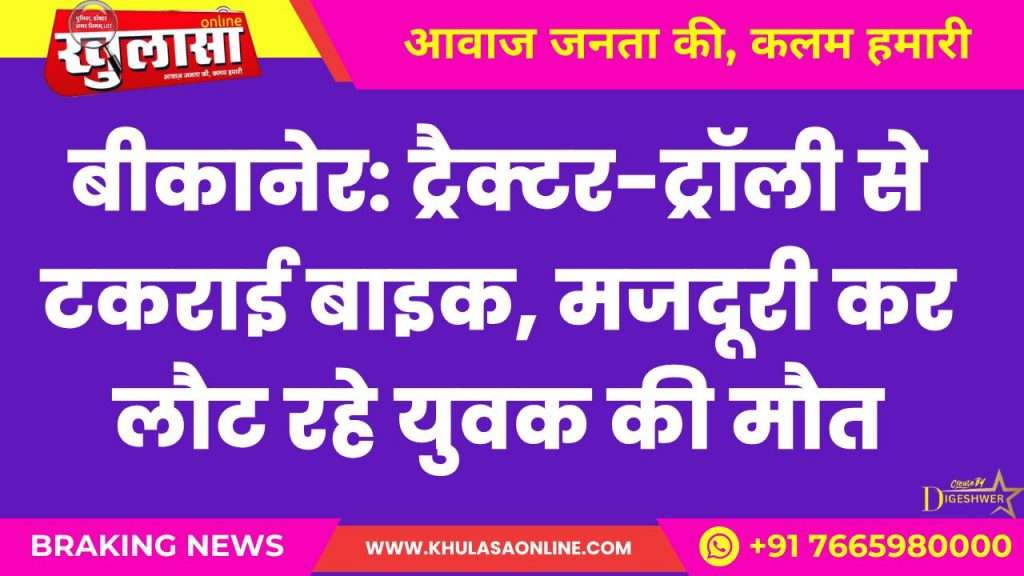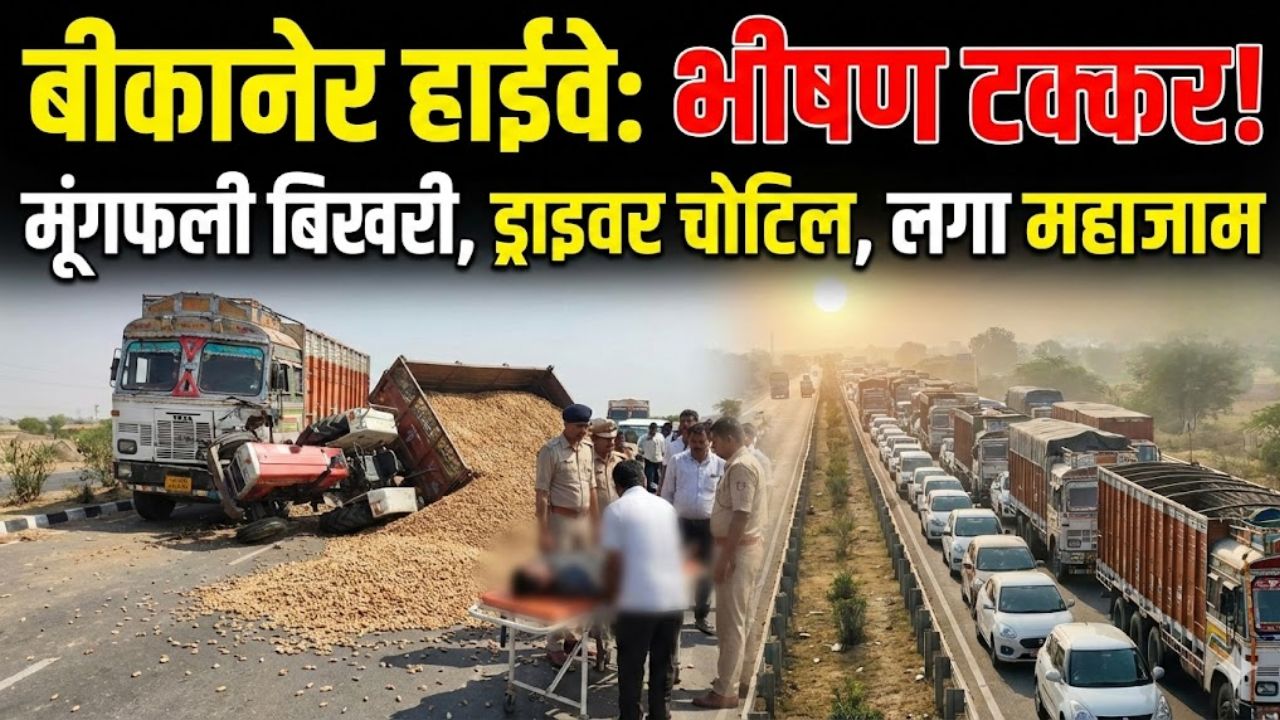 बीकानेर: हाईवे पर ट्रक ने मूंगफली से भरी ट्रैक्टर-ट्रॉली मारी टक्कर, ड्राईवर चोटिल,लगा लंबा जाम