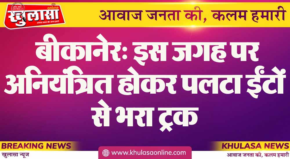 बीकानेर: इस जगह पर अनियंत्रित होकर पलटा ईंटों से भरा ट्रक