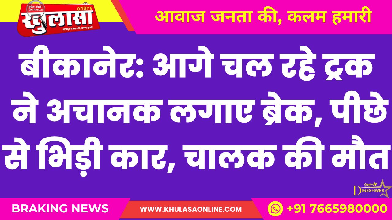 बीकानेर: आगे चल रहे ट्रक ने अचानक लगाए ब्रेक, पीछे से भिड़ी कार, चालक की मौत