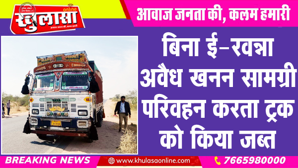 बिना ई-रवन्ना अवैध खनन सामग्री परिवहन करता ट्रक को किया जब्त