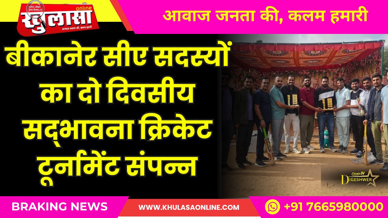 बीकानेर सीए सदस्यों का दो दिवसीय सद्भावना क्रिकेट टूर्नामेंट संपन्न