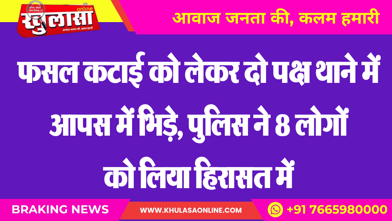 फसल कटाई को लेकर दो पक्ष थाने में आपस में भिड़े, पुलिस ने 8 लोगों को लिया हिरासत में