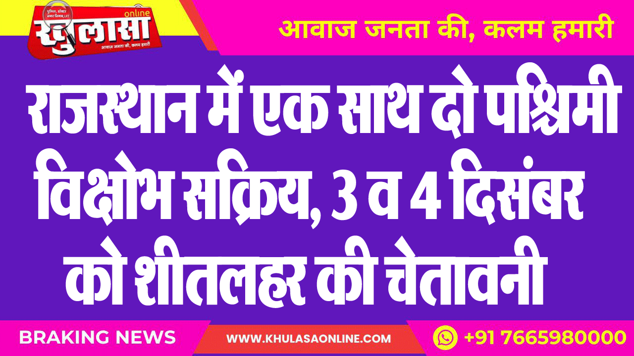 राजस्थान में एक साथ दो पश्चिमी विक्षोभ सक्रिय, 3 व 4 दिसंबर को शीतलहर की चेतावनी