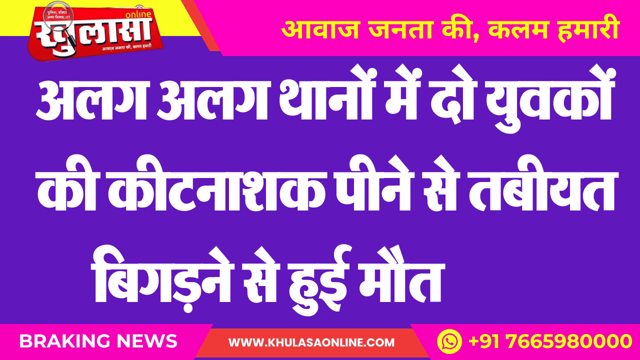 अलग अलग थानों में दो युवकों की कीटनाशक पीने से तबीयत बिगडऩे से हुई मौत