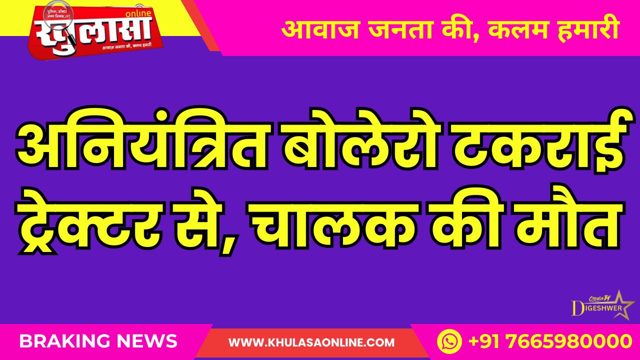 अनियंत्रित बोलेरो टकराई ट्रेक्टर से, चालक की मौत