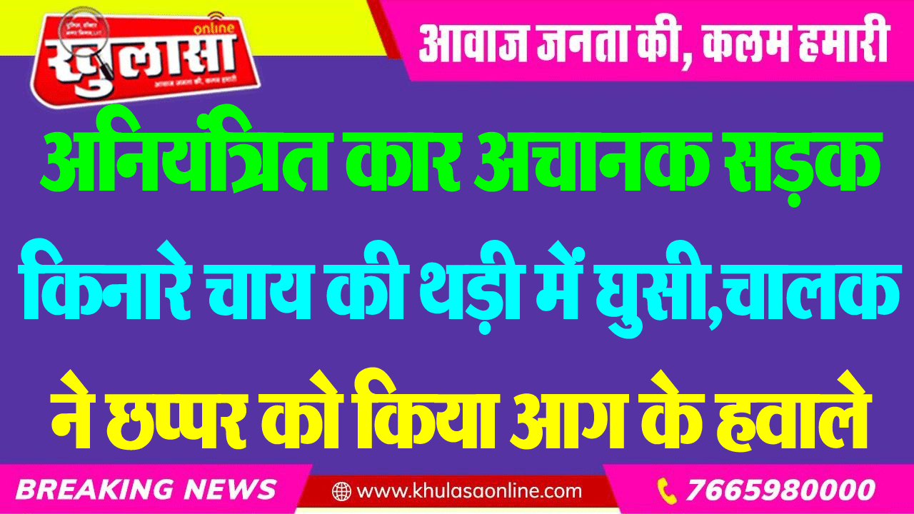 अनियंत्रित कार अचानक सडक़ किनारे चाय की थड़ी में घुसी, चालक ने छप्पर को किया आग के हवाले