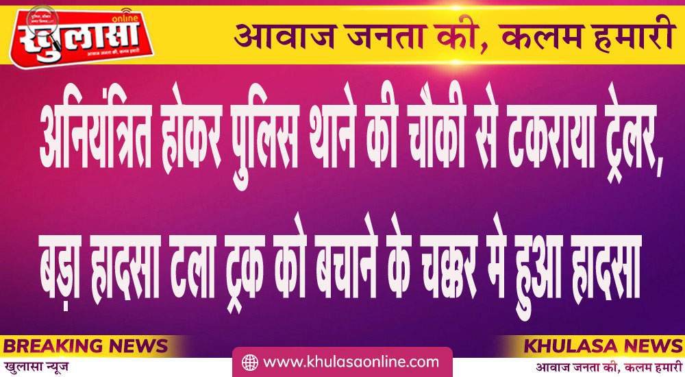 अनियंत्रित होकर पुलिस थाने की चौकी से टकराया ट्रेलर, बड़ा हादसा टला ट्रक को बचाने के चक्कर मे हुआ हादसा