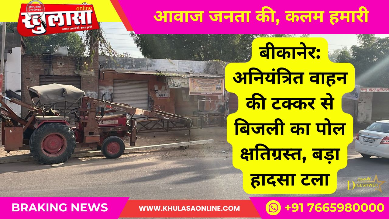 बीकानेर: अनियंत्रित वाहन की टक्कर से बिजली का पोल क्षतिग्रस्त, बड़ा हादसा टला