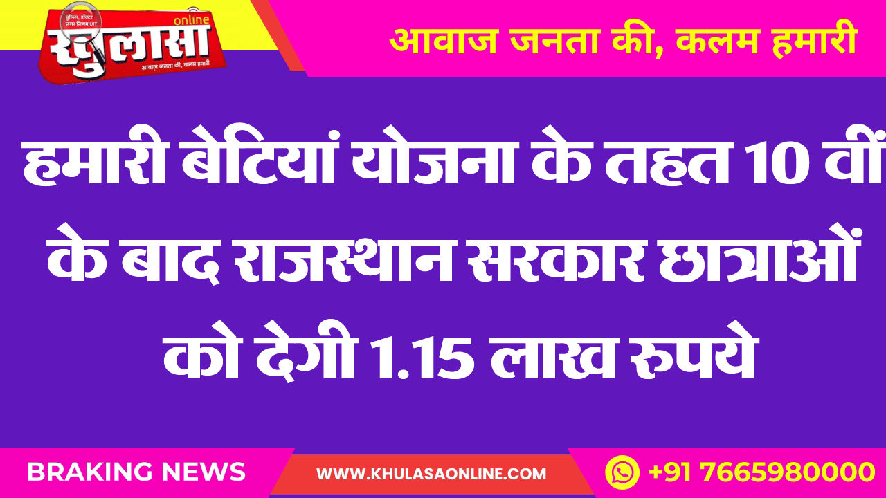 हमारी बेटियां योजना के तहत 10 वीं के बाद राजस्थान सरकार छात्राओं को देगी 1.15 लाख रुपय