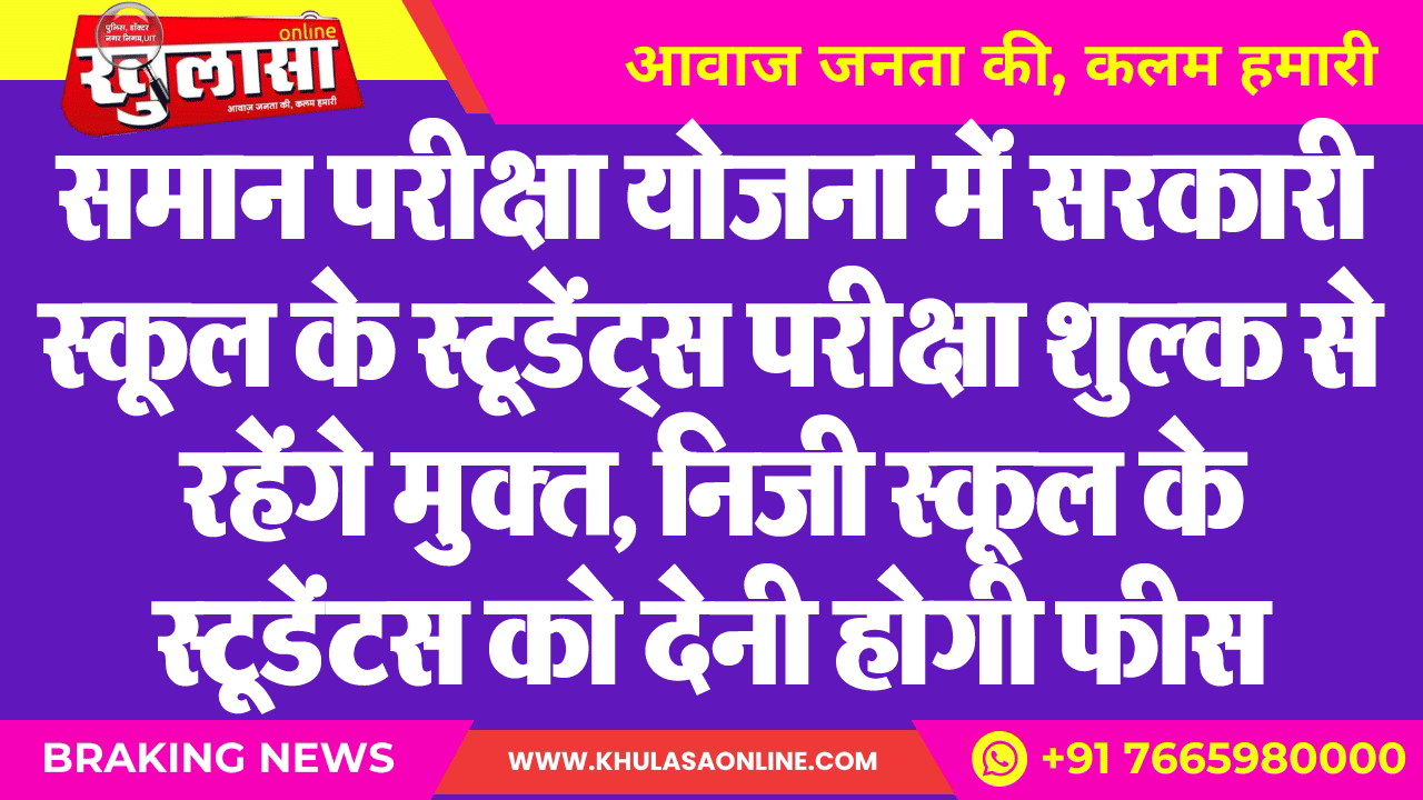 समान परीक्षा योजना में सरकारी स्कूल के स्टूडेंट्स परीक्षा शुल्क से रहेंगे मुक्त, निजी स्कूल के स्टूडेंटस को देनी होगी फीस
