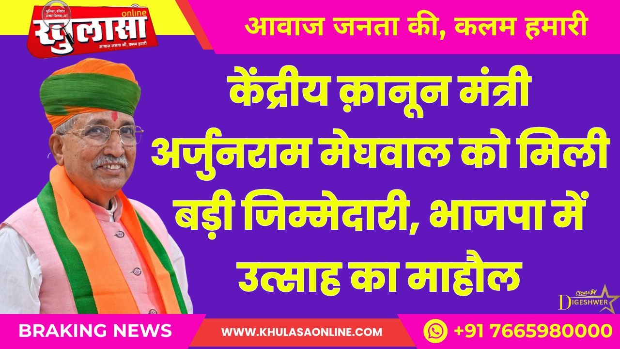 केंद्रीय क़ानून मंत्री अर्जुनराम मेघवाल को मिली बड़ी जिम्मेदारी, भाजपा में उत्साह का माहौल
