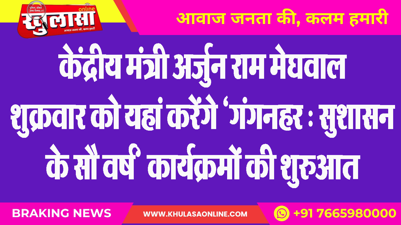 केंद्रीय मंत्री अर्जुन राम मेघवाल शुक्रवार को यहां करेंगे ‘गंगनहर : सुशासन के सौ वर्ष’ कार्यक्रमों की शुरुआत
