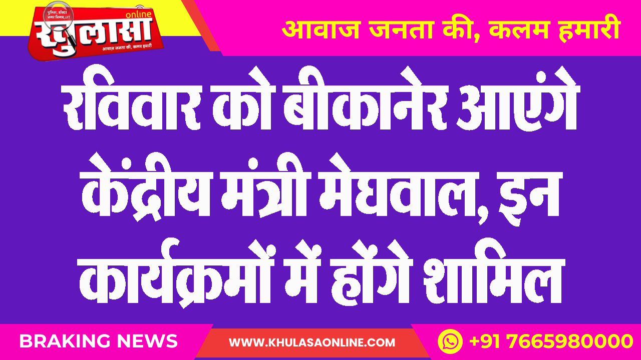 रविवार को बीकानेर आएंगे केंद्रीय मंत्री मेघवाल, इन कार्यक्रमों में होंगे शामिल