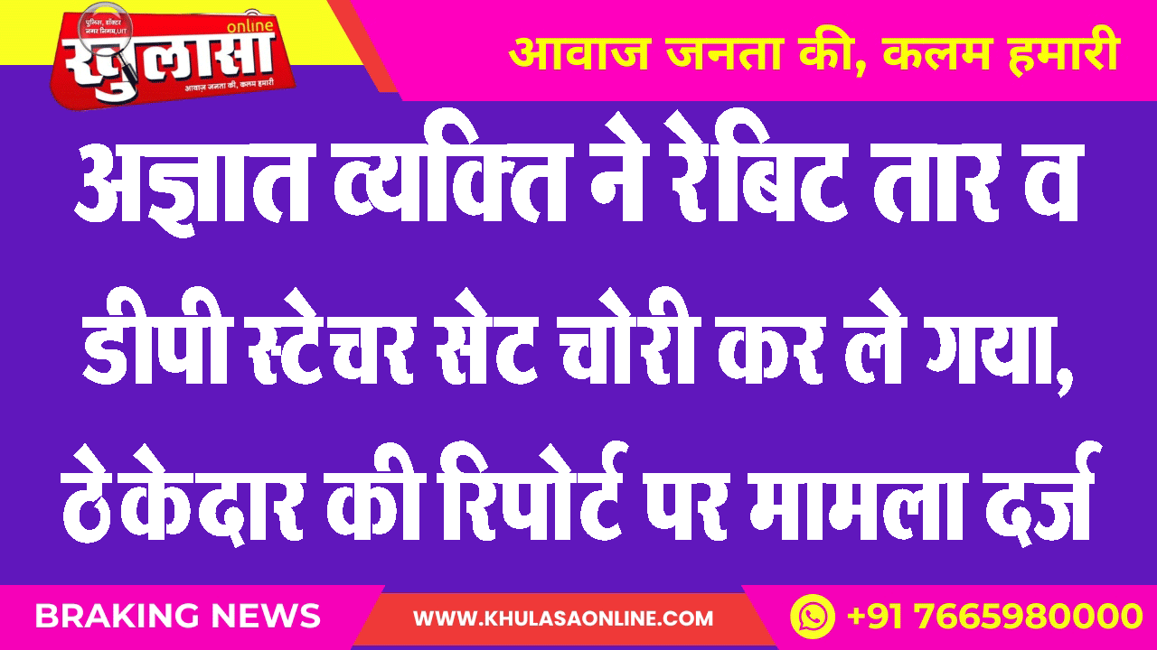 अज्ञात व्यक्ति ने रेबिट तार व डीपी स्टेचर सेट चोरी कर ले गया, ठेकेदार की रिपोर्ट पर मामला दर्ज