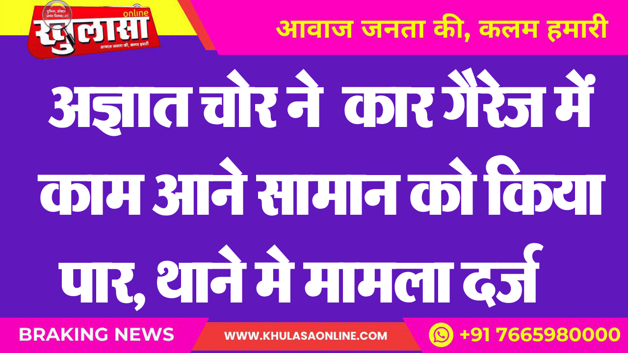 अज्ञात चोर ने कार गैरेज में काम आने सामान को किया पार, थाने मे मामला दर्ज