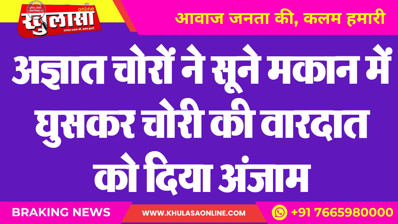 अज्ञात चोरों ने सूने मकान में घुसकर चोरी की वारदात को दिया अंजाम