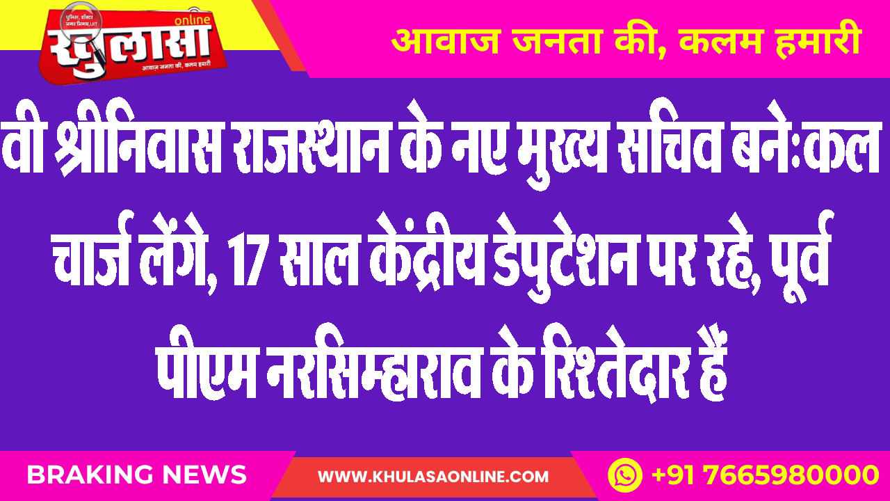 वी श्रीनिवास राजस्थान के नए मुख्य सचिव बने:कल चार्ज लेंगे, 17 साल केंद्रीय डेपुटेशन पर रहे, पूर्व पीएम नरसिम्हाराव के रिश्तेदार हैं