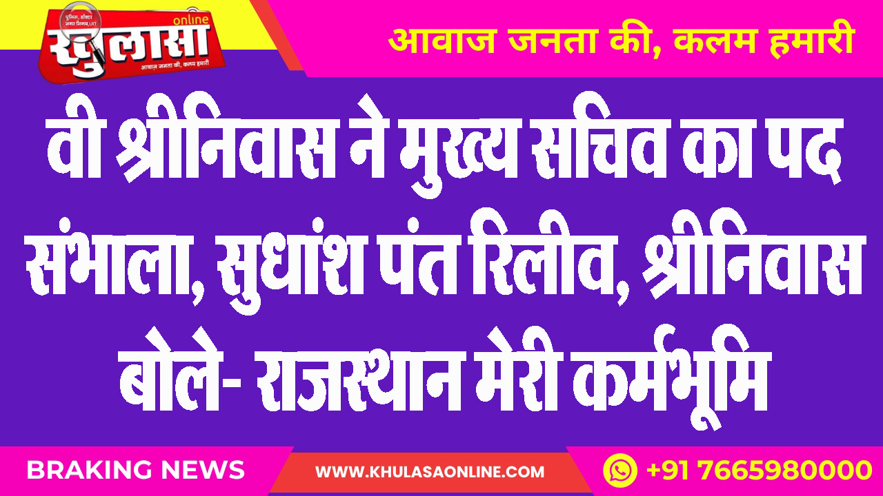 वी श्रीनिवास ने मुख्य सचिव का पद संभाला, सुधांश पंत रिलीव, श्रीनिवास बोले- राजस्थान मेरी कर्मभूमि