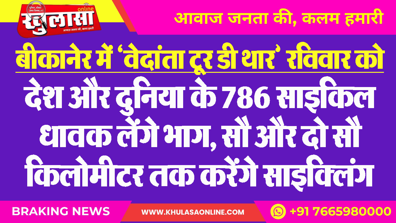 बीकानेर में ‘वेदांता टूर डी थार’ रविवार को : देश और दुनिया के 786 साइकिल धावक लेंगे भाग, सौ और दो सौ किलोमीटर तक करेंगे साइक्लिंग
