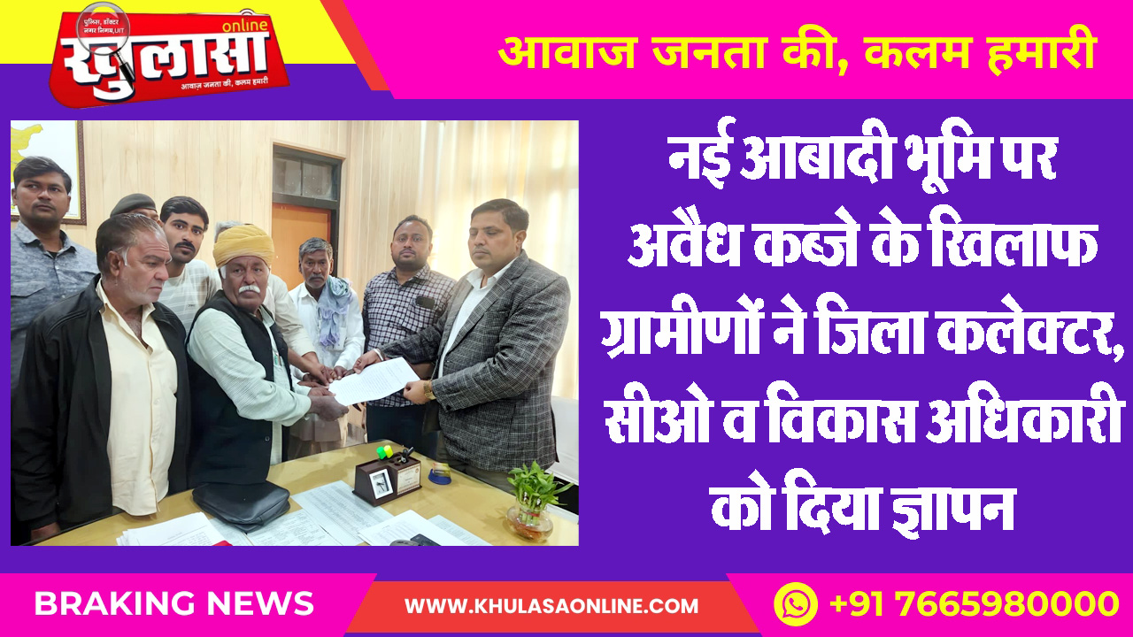 नई आबादी भूमि पर अवैध कब्जे के खिलाफ ग्रामीणों ने जिला कलेक्टर, सीओ व विकास अधिकारी को दिया ज्ञापन