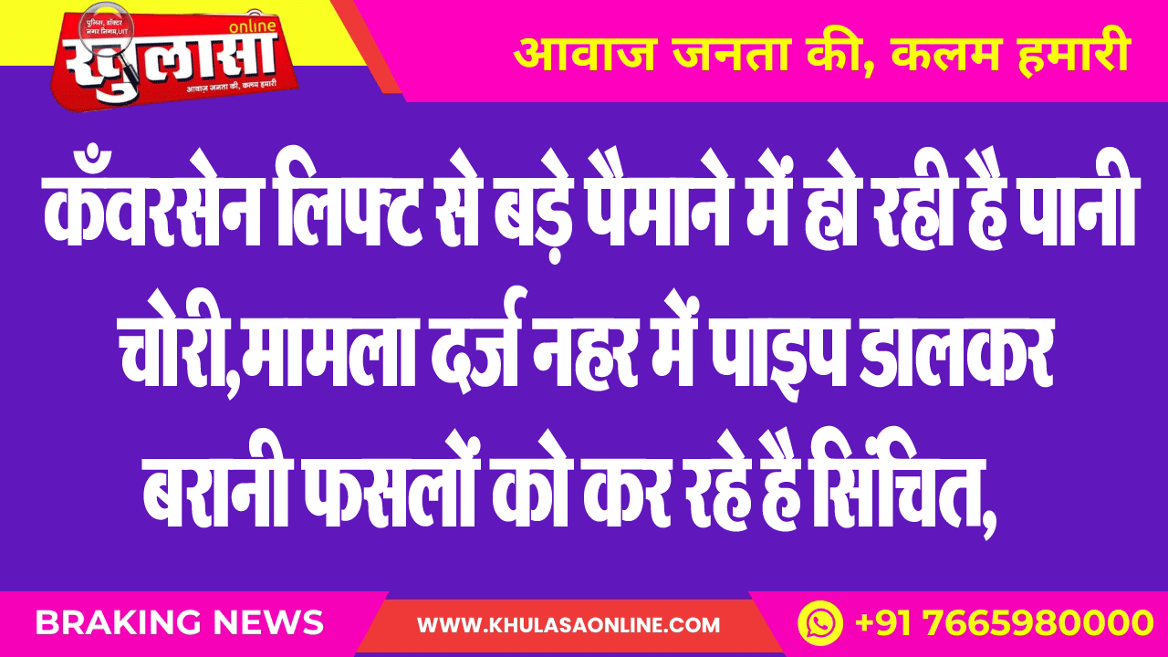 कँवरसेन लिफ्ट से बड़े पैमाने में हो रही है पानी चोरी,मामला दर्ज नहर में पाइप डालकर बरानी फसलों को कर रहे है सिंचित,