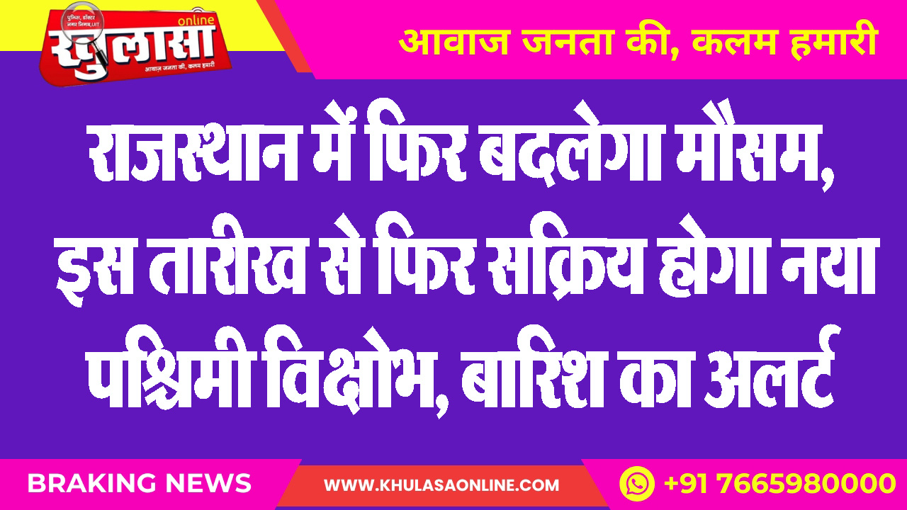 राजस्थान में फिर बदलेगा मौसम, इस तारीख से फिर सक्रिय होगा नया पश्चिमी विक्षोभ, बारिश का अलर्ट