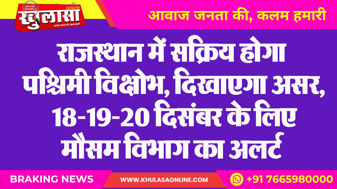 राजस्थान में सक्रिय होगा पश्चिमी विक्षोभ, दिखाएगा असर, 18-19-20 दिसंबर के लिए मौसम विभाग का अलर्ट