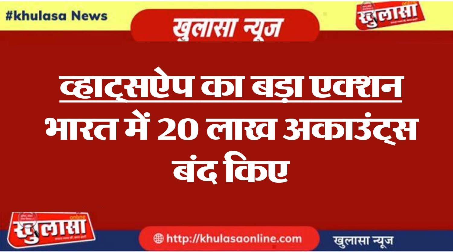 मैसेजिंग ऐप वॉट्सऐप ने अगस्त में भारत में 20 लाख से भी ज्यादा यूजर्स के अकाउंट बंद किए हैं। यह कार्रवाई भारत के आईटी नियमों और वॉट्सऐप की सेवा शर्तों का उल्लंघन करने वाले अकाउंट्स के खिलाफ की गई है। मंगलवार को जारी की गई वॉट्सऐप की मंथली कंप्लायंस रिपोर्ट से यह जानकारी सामने आई है।