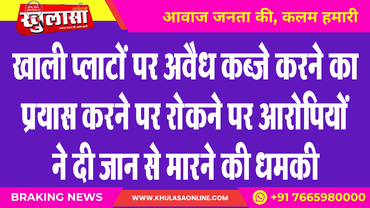 खाली प्लाटों पर अवैध कब्जे करने का प्रयास करने पर रोकने पर आरोपियों ने दी जान से मारने की धमकी