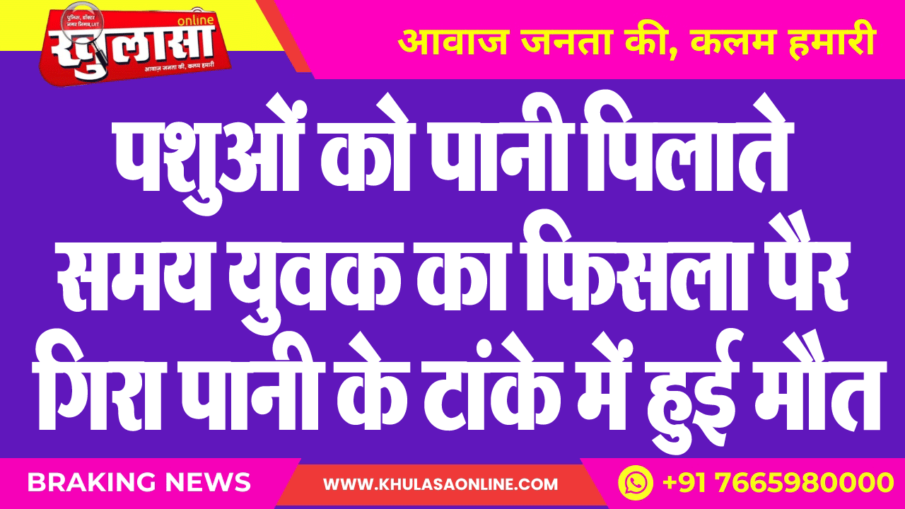 पशुओं को पानी पिलाते समय युवक का फिसला पैर गिरा पानी के टांके में हुई मौत