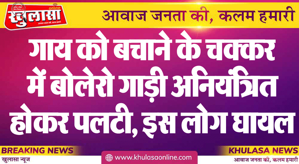 गाय को बचाने के चक्कर में बोलेरो गाड़ी अनियंत्रित होकर पलटी, इस लोग घायल