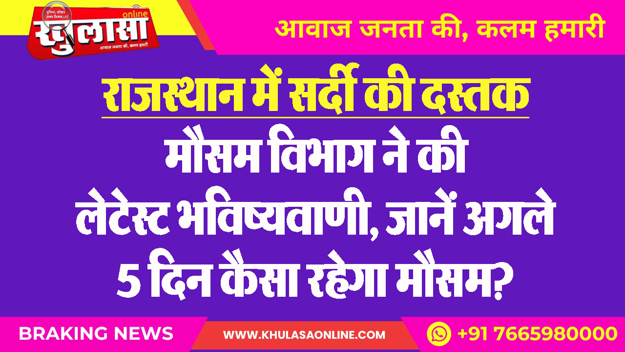 राजस्थान में सर्दी की दस्तक : मौसम विभाग ने की लेटेस्ट भविष्यवाणी, जानें अगले 5 दिन कैसा रहेगा मौसम?