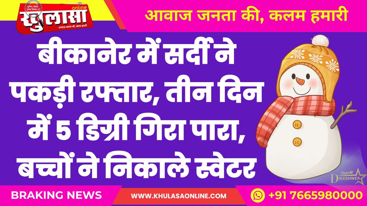बीकानेर में सर्दी ने पकड़ी रफ्तार, तीन दिन में 5 डिग्री गिरा पारा, बच्चों ने निकाले स्वेटर