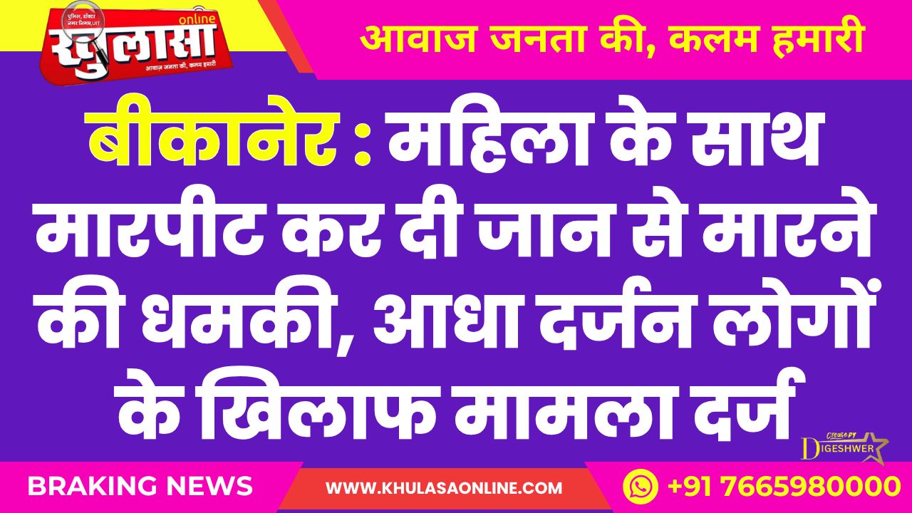 बीकानेर : महिला के साथ मारपीट कर दी जान से मारने की धमकी, आधा दर्जन लोगों के खिलाफ मामला दर्ज