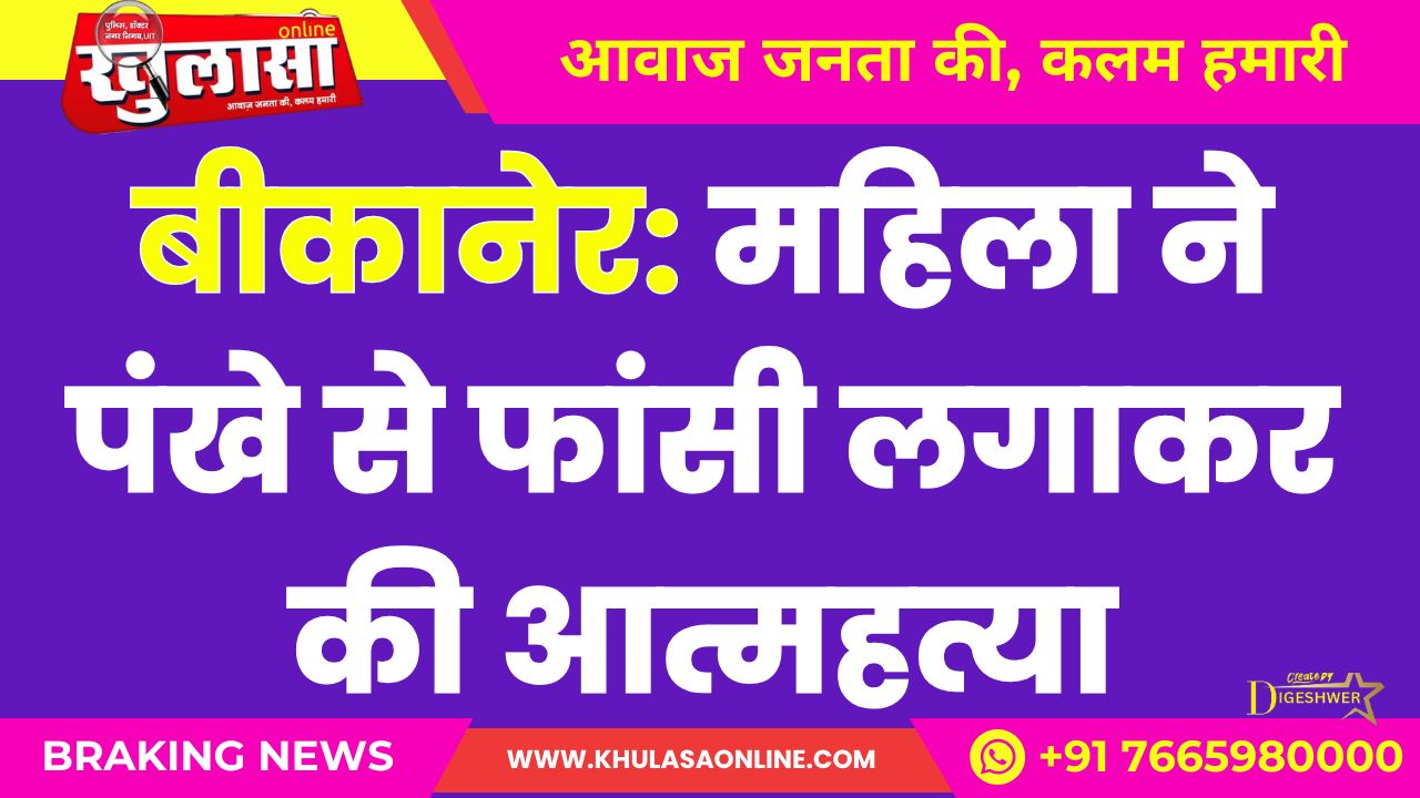 बीकानेर: महिला ने पंखे से फांसी लगाकर की आत्महत्या