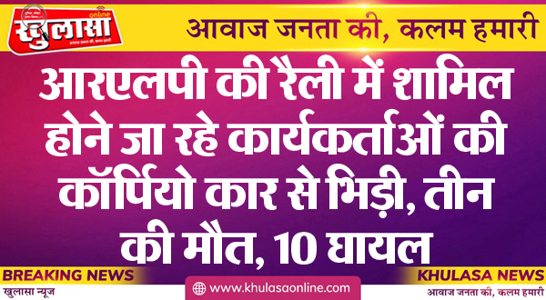 आरएलपी की रैली में शामिल होने जा रहे कार्यकर्ताओं की कॉर्पियो कार से भिड़ी, तीन की मौत, 10 घायल