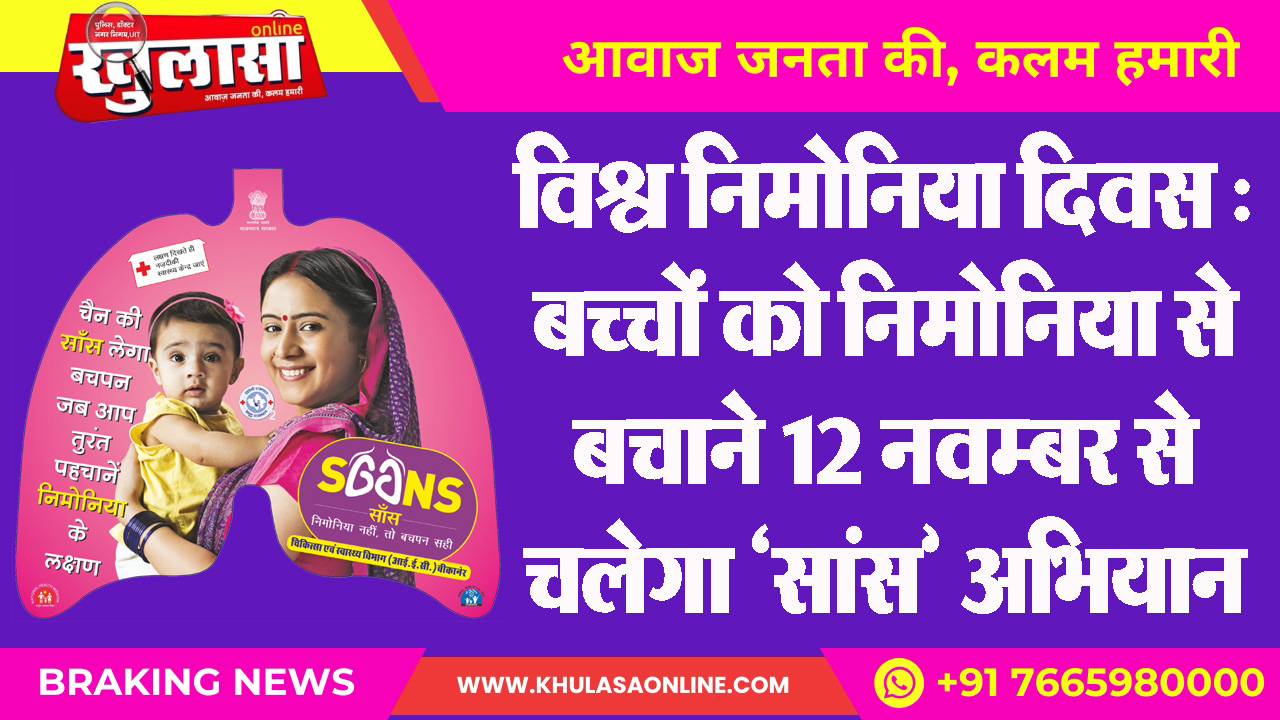 विश्व निमोनिया दिवस : बच्चों को निमोनिया से बचाने 12 नवम्बर से चलेगा ‘सांस’ अभियान