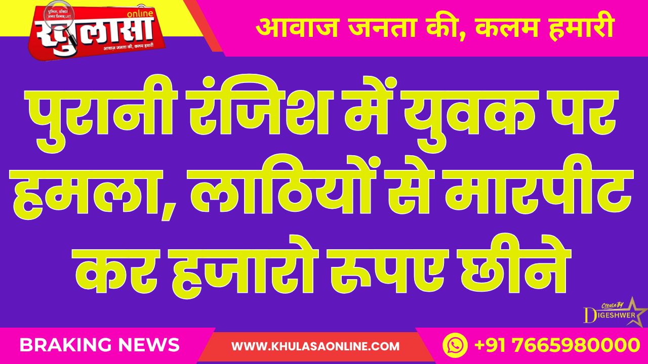पुरानी रंजिश में युवक पर हमला, लाठियों से मारपीट कर हजारो रूपए छीने