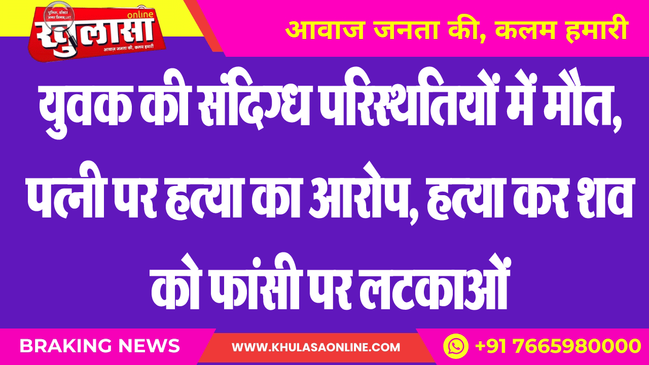 युवक की संदिग्ध परिस्थतियों में मौत, पत्नी पर हत्या का आरोप, हत्या कर शव को फांसी पर लटकाओं