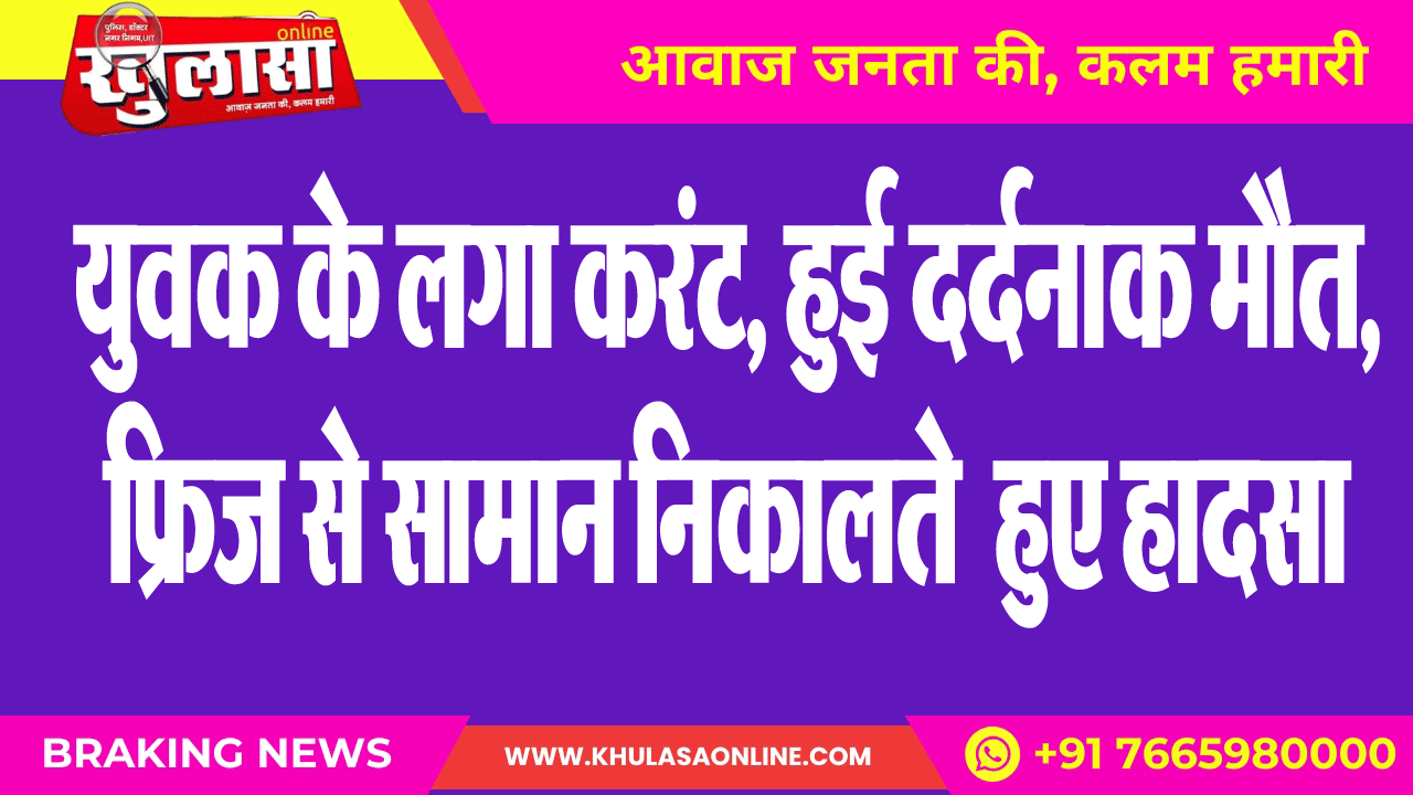 युवक के लगा करंट, हुई दर्दनाक मौत, फ्रिज से सामान निकालते हुए हादसा