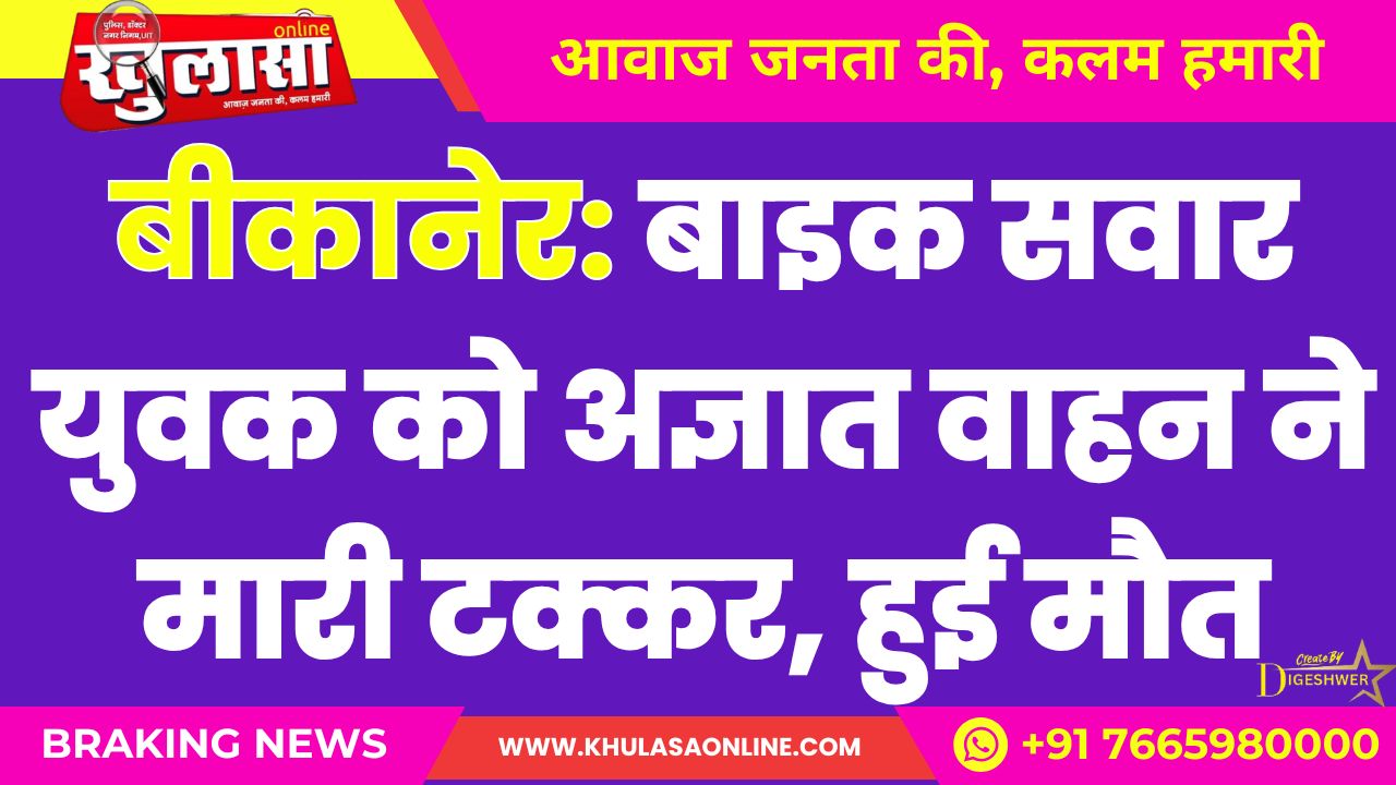 बीकानेर: बाइक सवार युवक को अज्ञात वाहन ने मारी टक्कर, हुई मौत