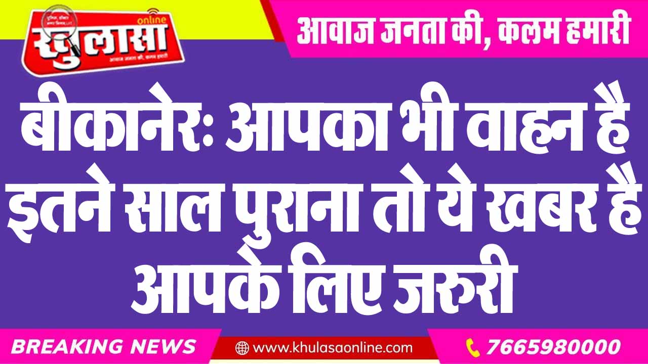 बीकानेर: आपका भी वाहन है इतने साल पुराना तो ये खबर है आपके लिए जरुरी