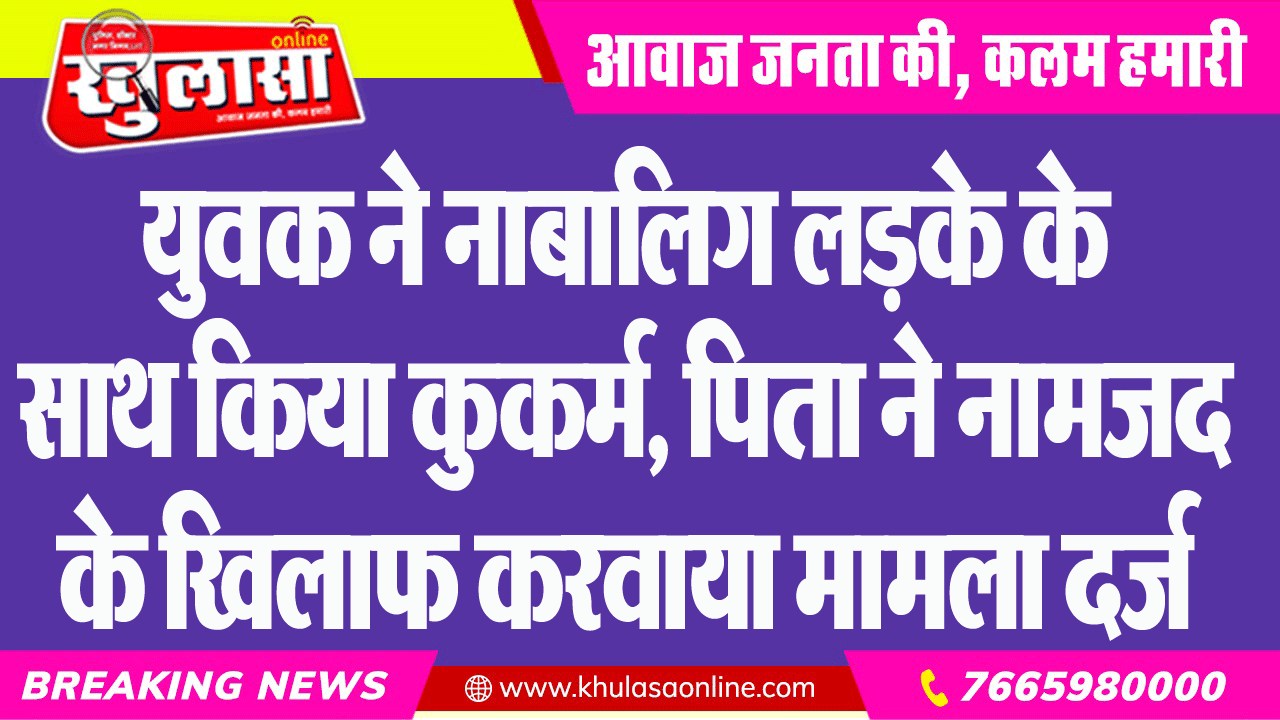 युवक ने नाबालिग लडक़े के साथ किया कुकर्म, पिता ने नामजद के खिलाफ करवाया मामला दर्ज