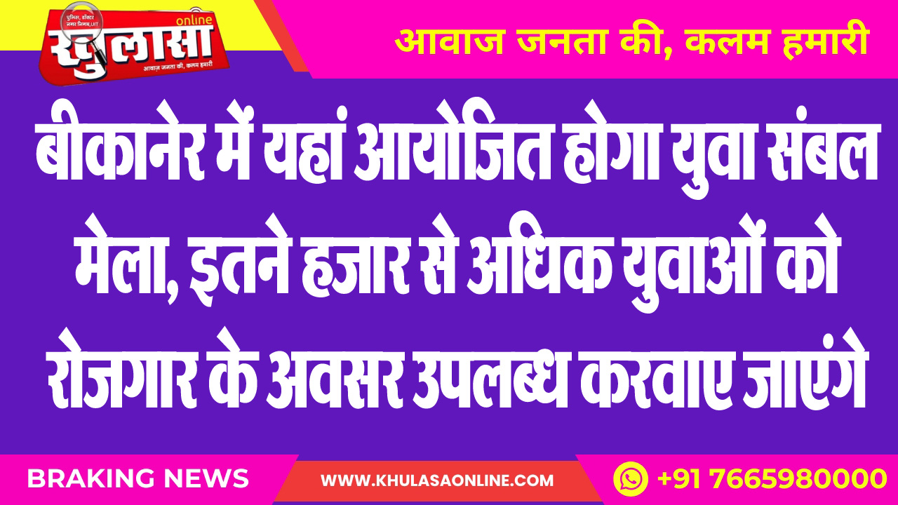बीकानेर में यहां आयोजित होगा युवा संबल मेला, इतने हजार से अधिक युवाओं को रोजगार के अवसर उपलब्ध करवाए जाएंगे
