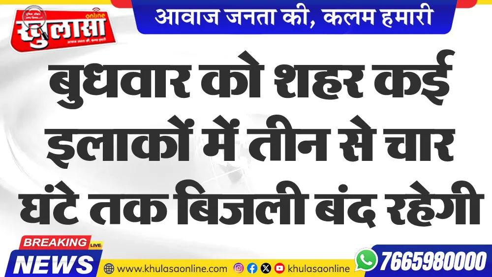 बुधवार को शहर कई इलाकों में तीन से चार घंटे तक बिजली बंद रहेगी